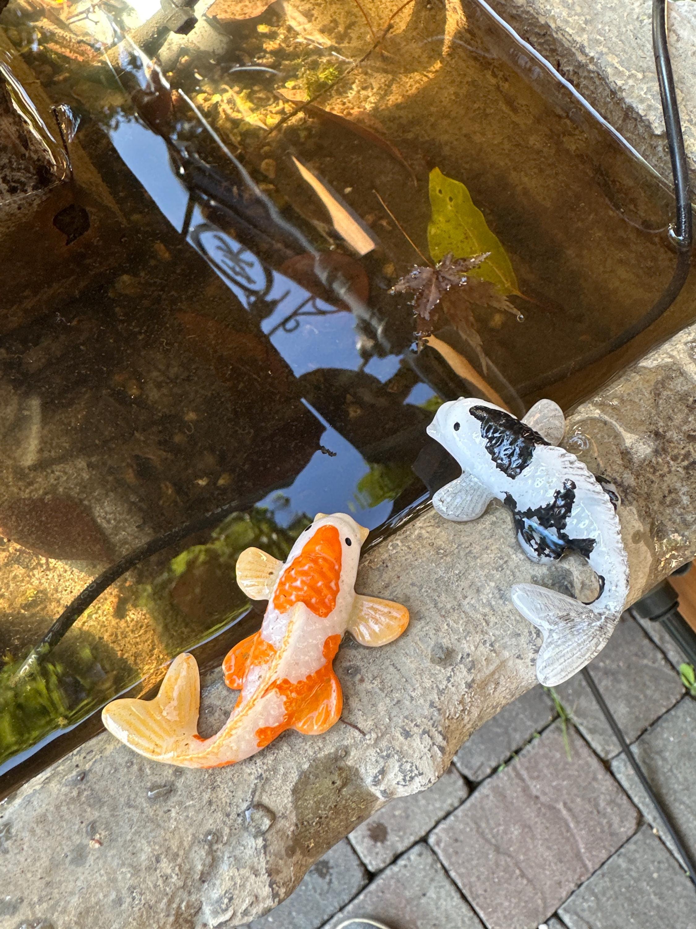 In the still waters of an enchanted pond, koi glide like living jewels—symbols of serenity, resilience, and flowing fortune. These miniature resin koi carry whispers of balance and harmony, inviting the calm rhythm of water and the timeless beauty of the fey into your home or sacred space. Whether resting in a fairy garden stream, circling a tabletop pond, or gracing a mindful zen corner, they shimmer with quiet magic.