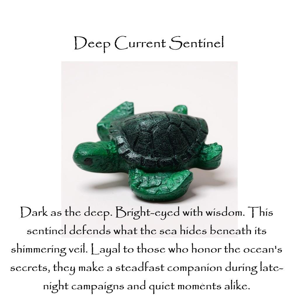 ✦ 3 resin turtles (Verdant Tidekeeper, Deepcurrent Sentinel, Stormshore Watcher)