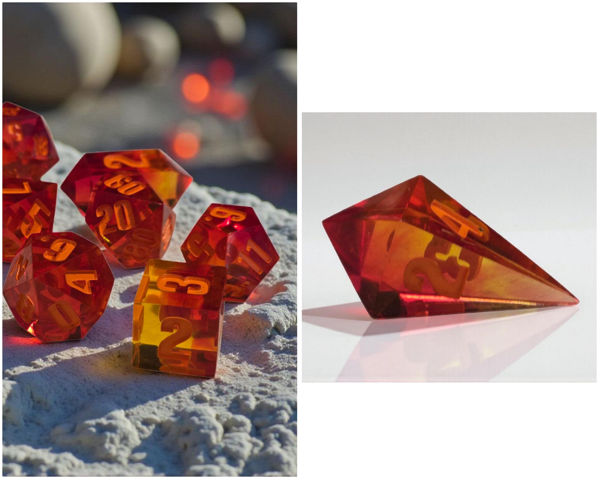 ✦ 7-piece Sharp Edge Resin Dice Set (D4, D6, D8, D10, D%, D12, D20)