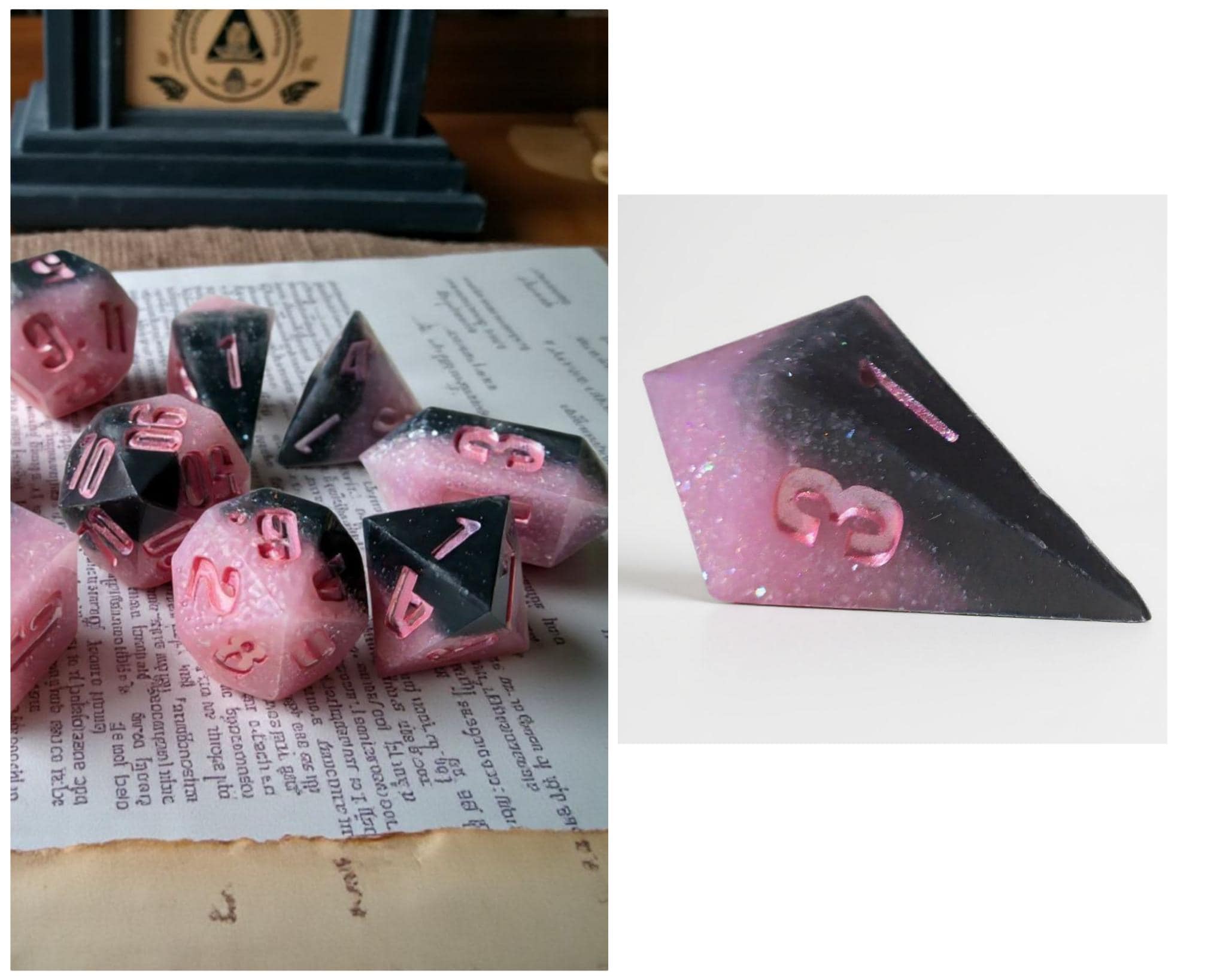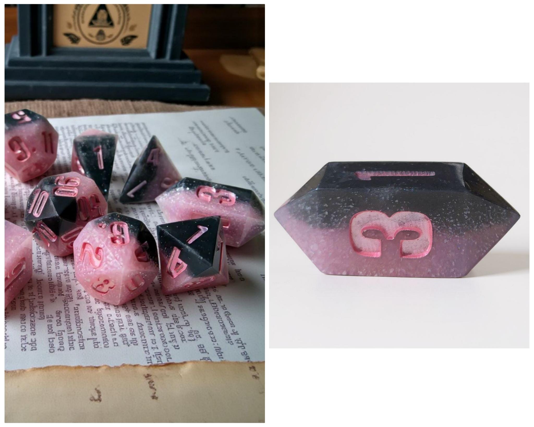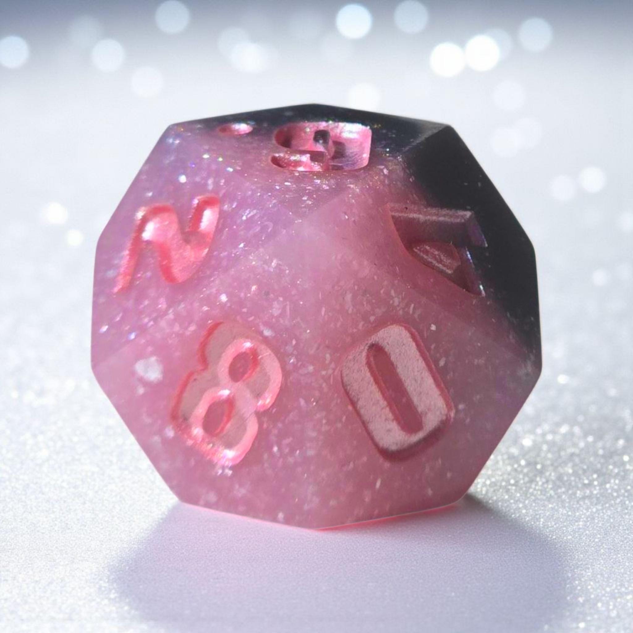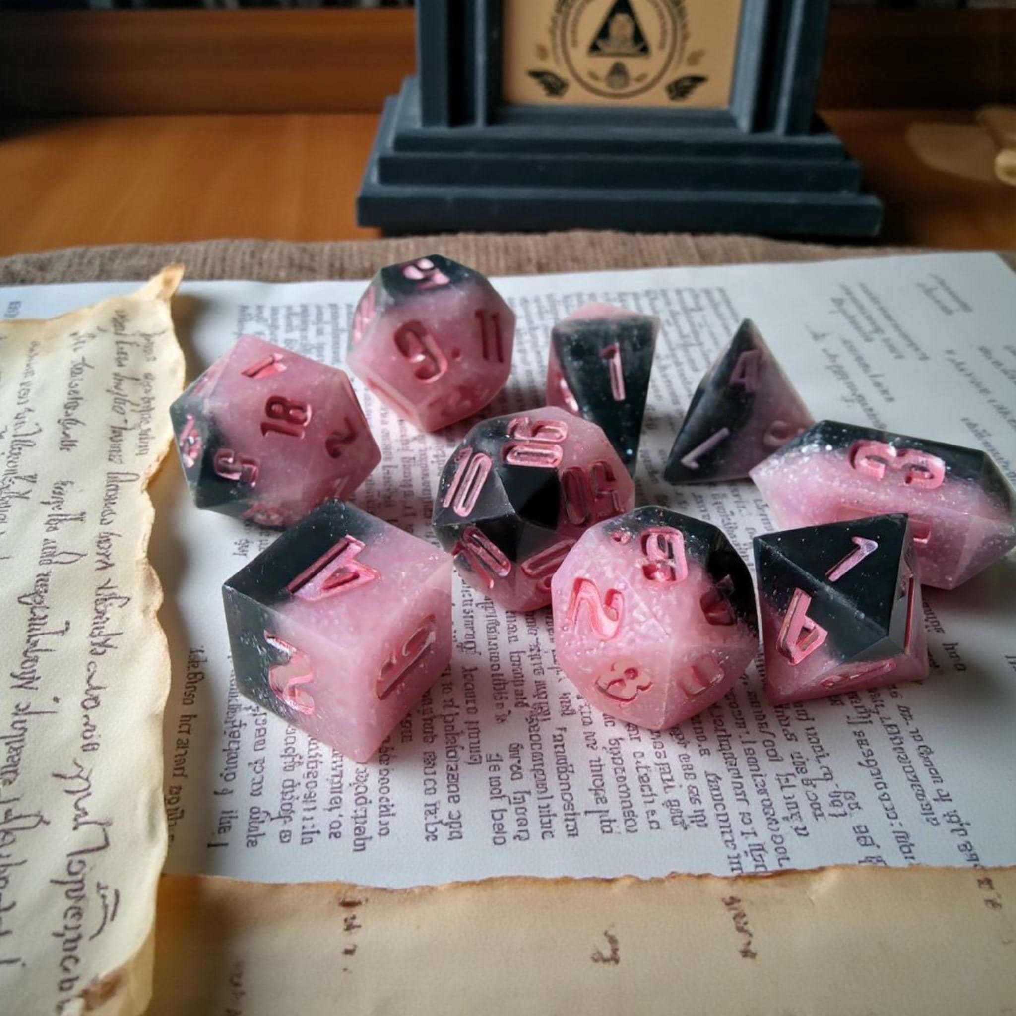 From the twilight gardens of forgotten realms, the Glimmering Ashen Bloom unfurls—petals of shadow veined with radiant blush, kissed with starlight shimmer. Each die carries the essence of a flower that blossoms only in midnight flame, a perfect balance of mystery and beauty, waiting to be rolled into fate’s hand.