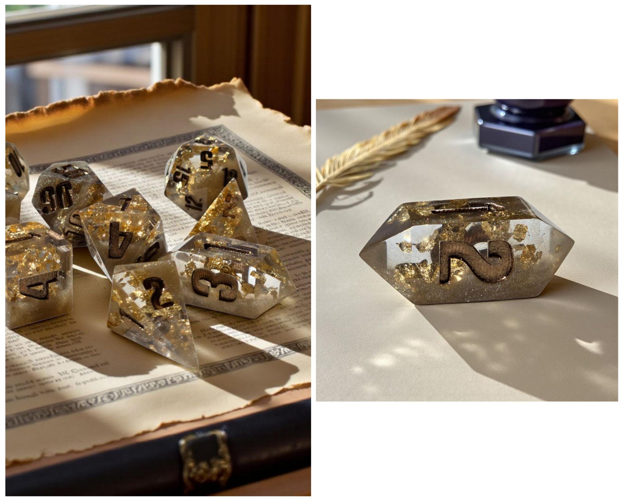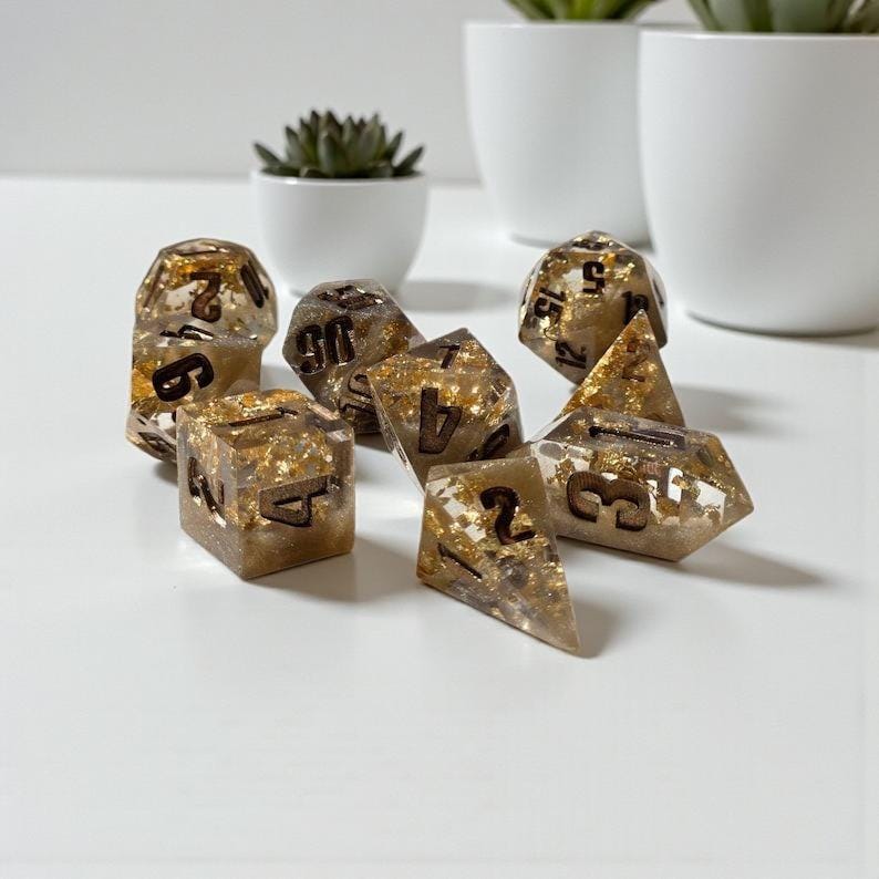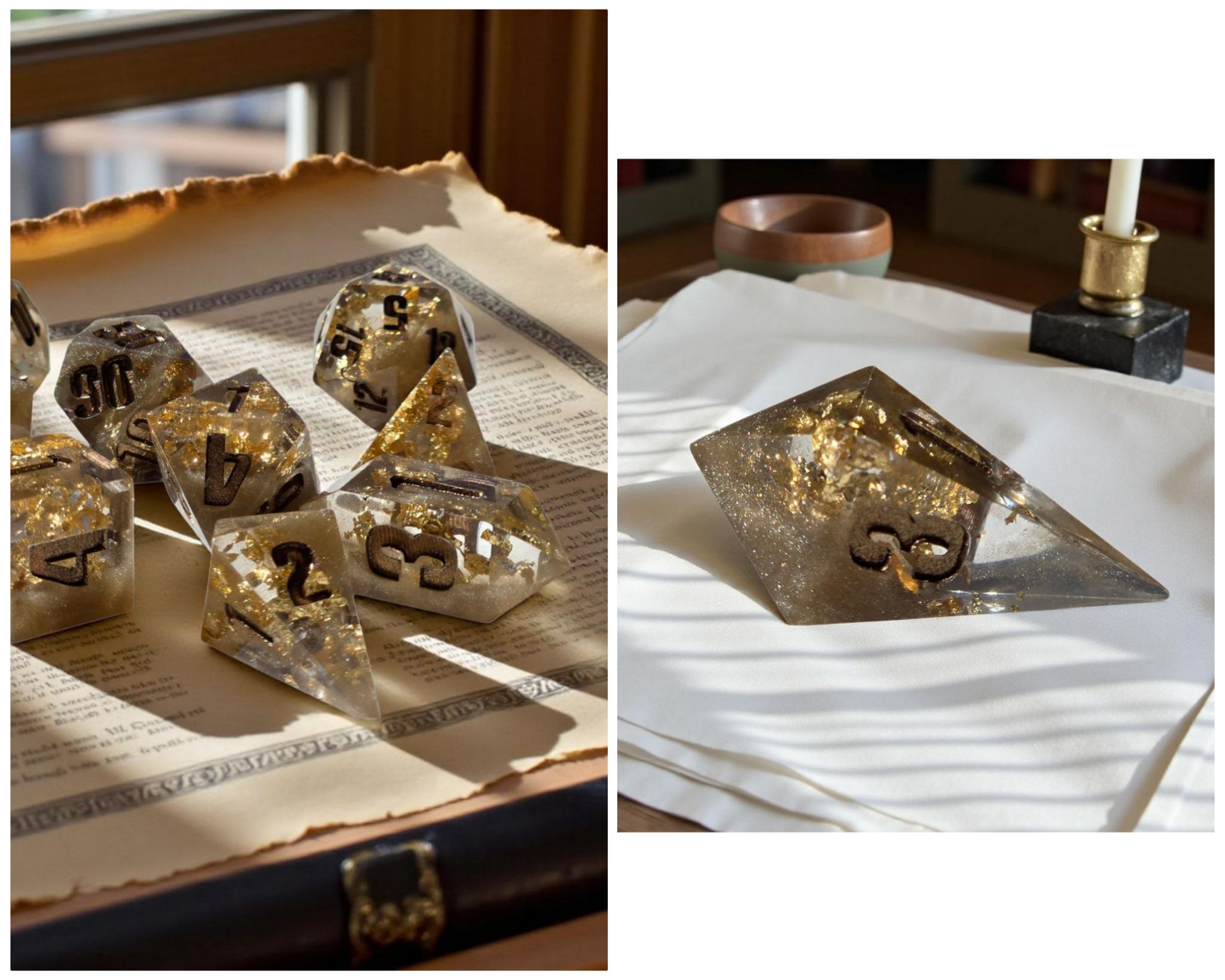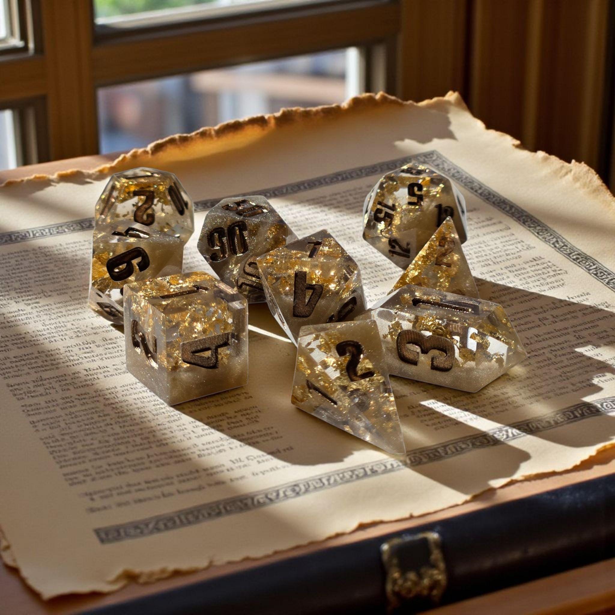 • Full 7-piece sharp-edge polyhedral dice set
