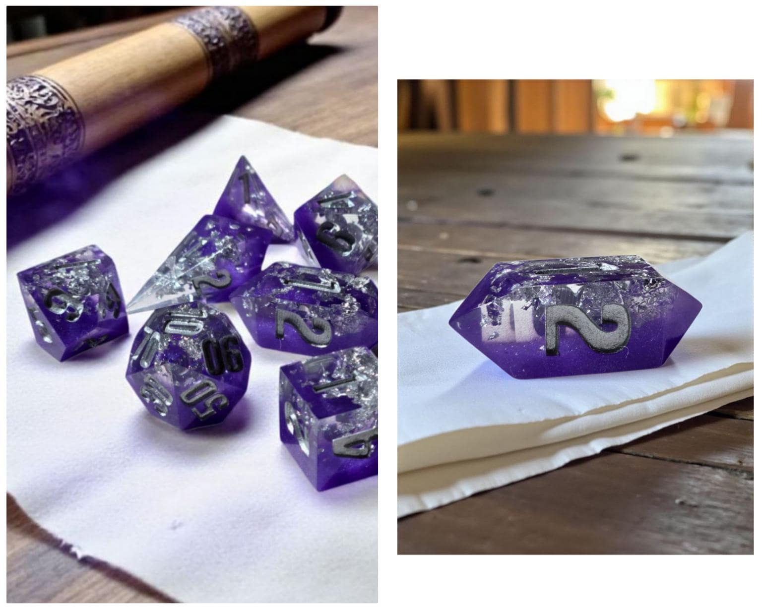 ✦ Handcrafted sharp-edge resin dice set (7 pieces)