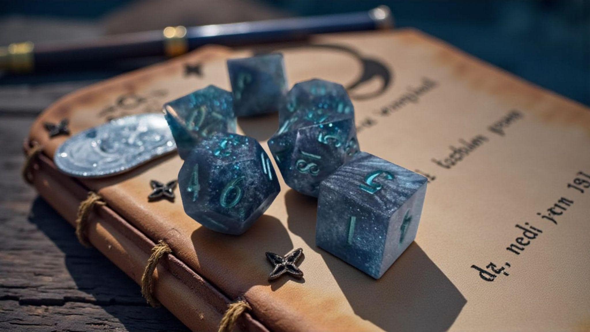 ✦ Full 7-piece sharp edge RPG dice set (D4, D6, D8, D10, D%, D12, D20)